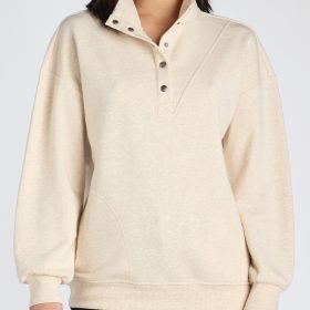 The perfect mash-up…part Henley, part sweatshirt and totally fabulous. It’s Mock Neck Pullover for the win. A stylish substitute for your basic hoodie, this sweatshirt features a snap-placket Henley neckline, an easy fit and side pockets…score!