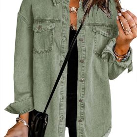 - Feature: Long sleeve, Button Down, Raw Hem, Denim Jacket, Chest Pockets, Distressed