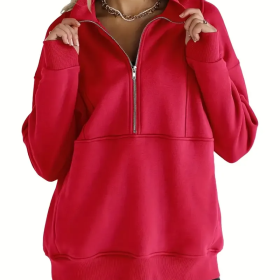 Elevate your wardrobe with this zip up hoodie for women. Featuring a casual loose fit, trendy dropped shoulders, and a half zip collar, this hoodie provides a distinctive style. Perfect for layering or creating a statement look that’s both comfortable and chic.