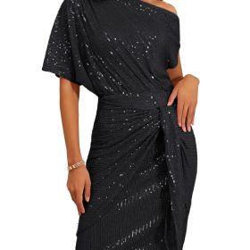 The sequin material with comfy lining create a shiny effect, make you stand out in any occasion and show your charming, perfect for any party. Short sleeve party dress, sparkling sequins, asymmetric one shouler, 6)Front skirt with overlay decorated, hidden zipper in right side, hits above knee, slim fit hips-wrapped silhouette, sexy bodycon party midi dress for women.