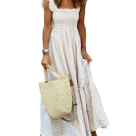 Women’s Retro Plaid Smocked Flounce Long Dress (Buy 2 Free Shipping)